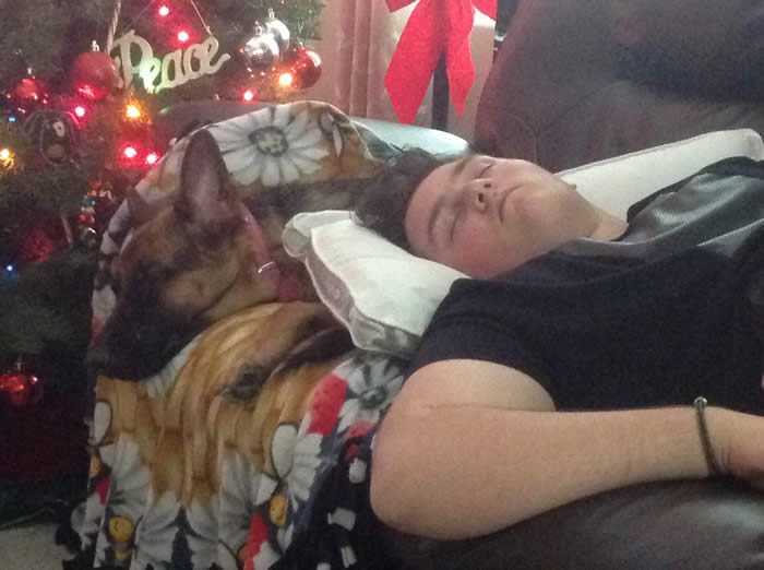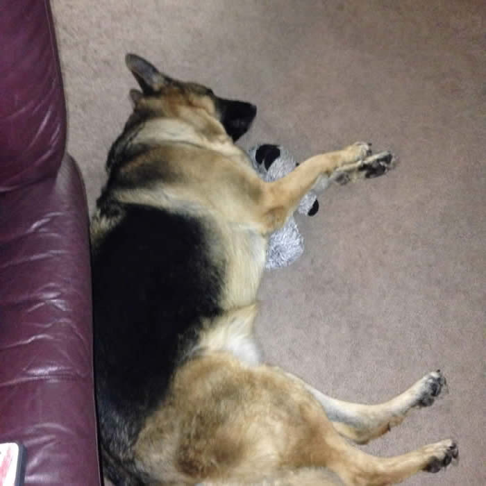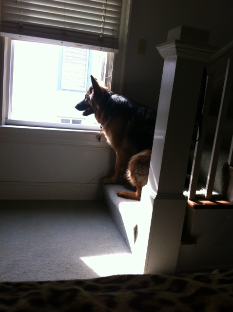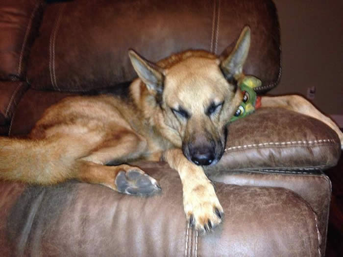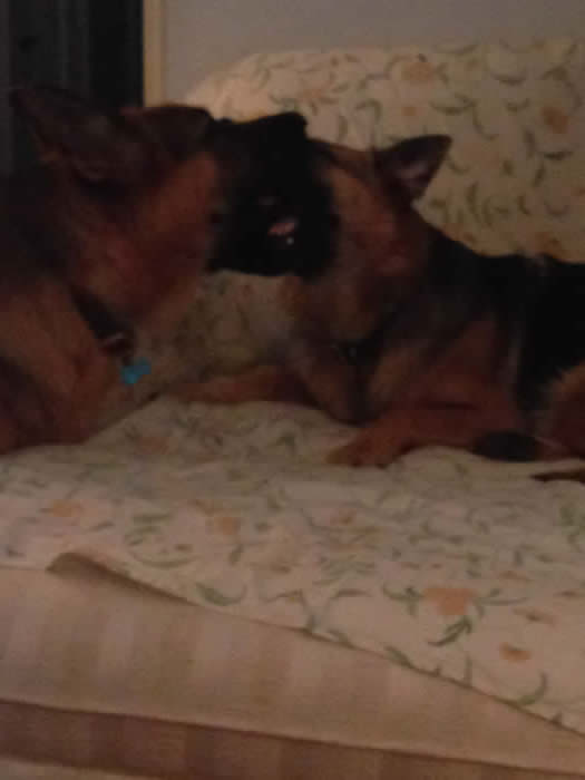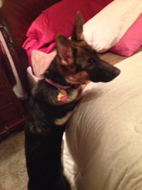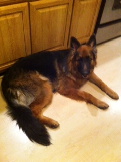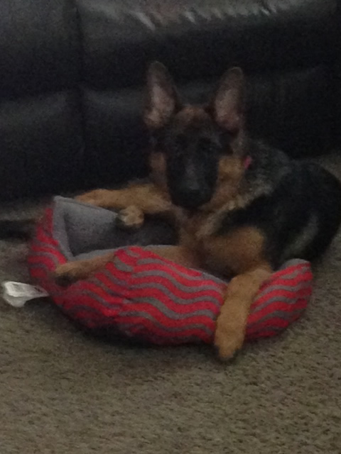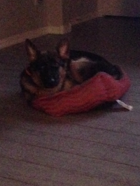 Loved the pic of Ava. Here is her sister Kalli getting ready for a nap yesterday. Isn't she the cutest? We just love her. She spends her day with our other GSD Marley. Getting better at potty training. She can now use the doggy door and just started going down steps on Monday. Her vet appointment went well last week. She weighs 22lbs. Try carrying that down the steps all the time. LOL. Stay warm!!
