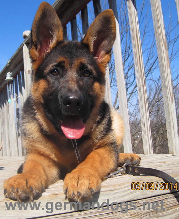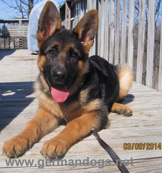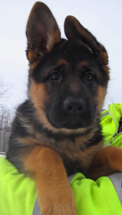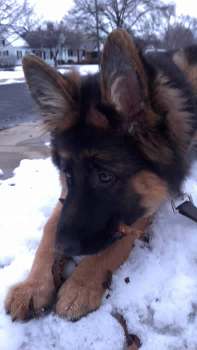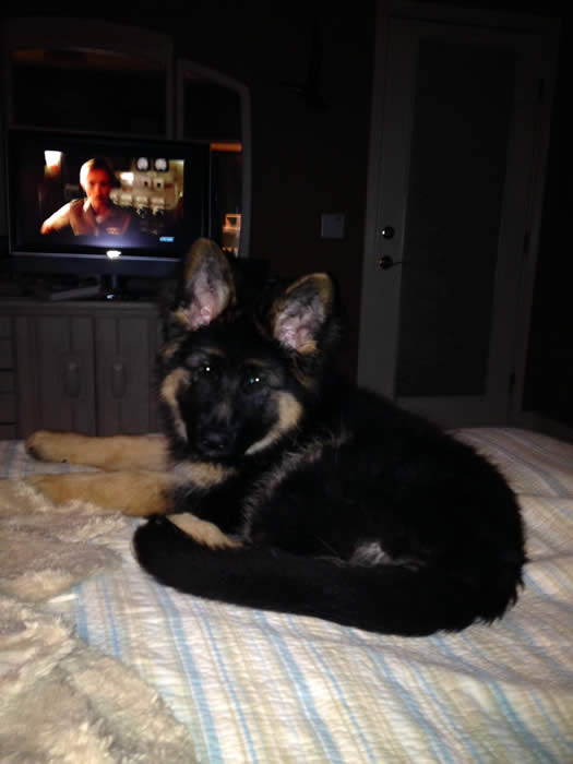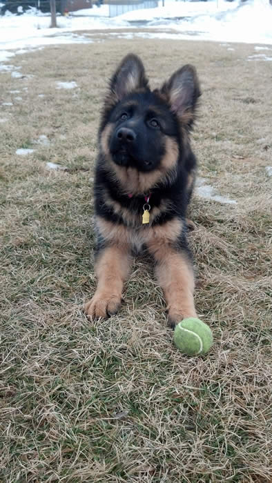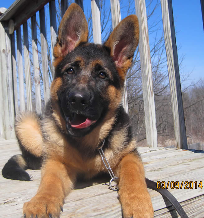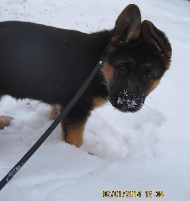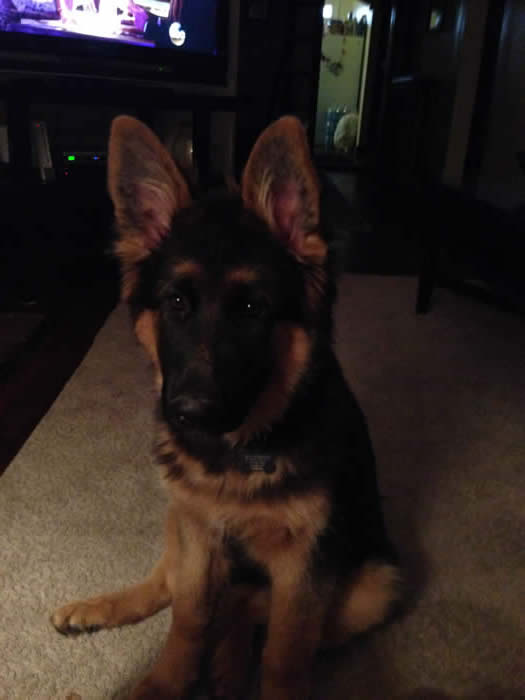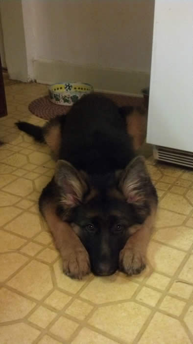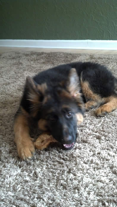 Awesome German Shepherd. On the first day I brought him home he had a few accidents but I'm telling you he is sooo intelligent that he has not gone in the house since the first day. We read a lot of books and watched videos on how to interact as pack leaders and stuff and by following that, this has been the most rewarding experience ever. It's not easy but I will say with Thor being as smart as he is, this has been the easiest training we have ever done!!! You have an awesome breed of German Shepherd dogs. Kudos to you for doing all you do so when we get to take our puppies home there pretty much ready for the new home. Thanks again and we will send pics as he grows :)