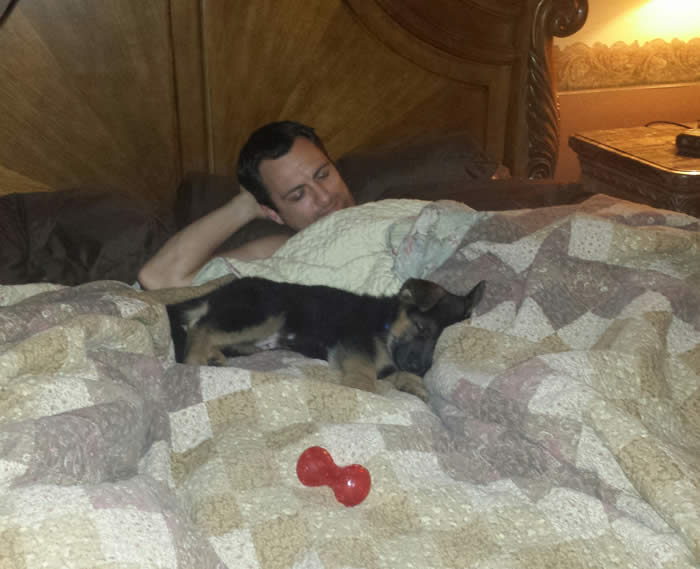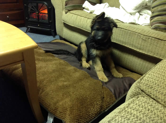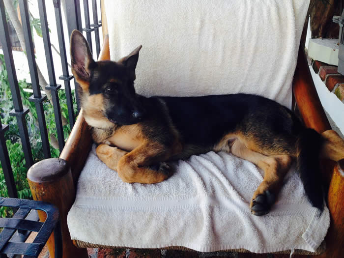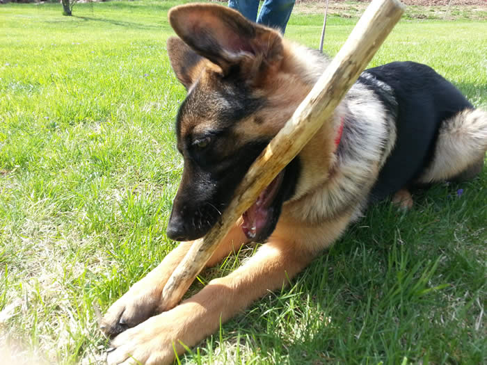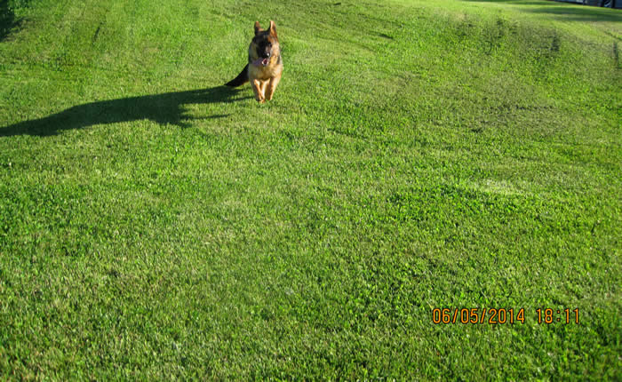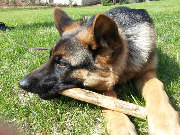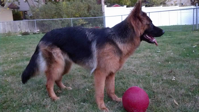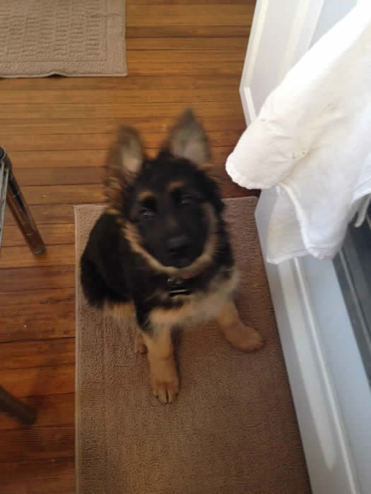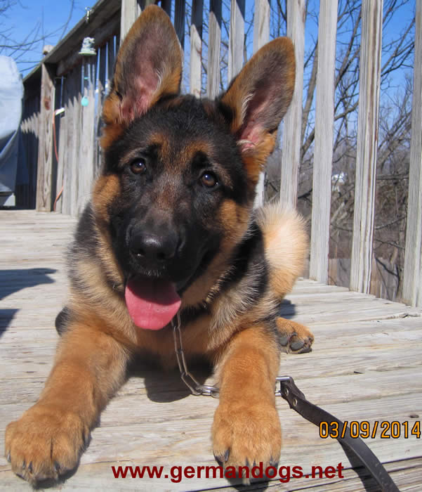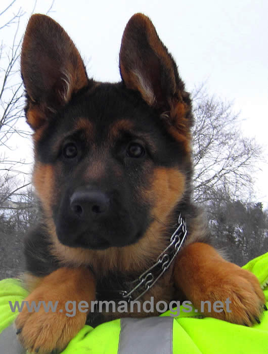 Awesome German Shepherd. On the first day I brought him home he had a few accidents but I'm telling you he is sooo intelligent that he has not gone in the house since the first day. We read a lot of books and watched videos on how to interact as pack leaders and stuff and by following that, this has been the most rewarding experience ever. It's not easy but I will say with Thor being as smart as he is, this has been the easiest training we have ever done!!! You have an awesome breed of German Shepherd dogs. Kudos to you for doing all you do so when we get to take our puppies home there pretty much ready for the new home. Thanks again and we will send pics as he grows :)