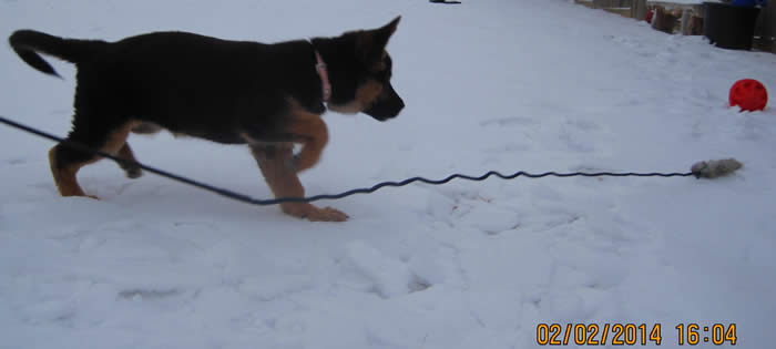 This is "Emma" a pup from Ben x Bella's 11/13/13 litter.