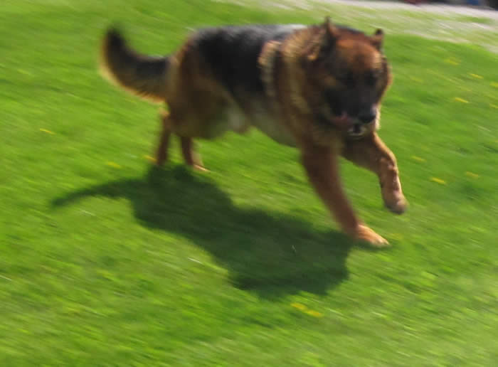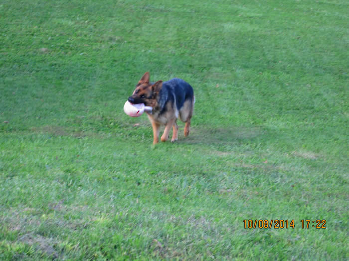 Bogey running with his ball.