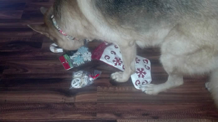 This is Berlin opening her Christmas gifts.