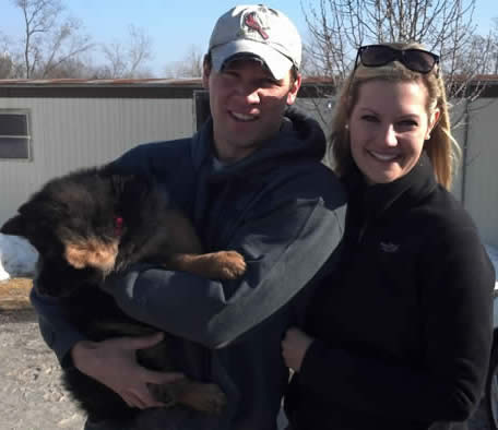 Proud new puppy owners Tim & Courtney with "Emmy."