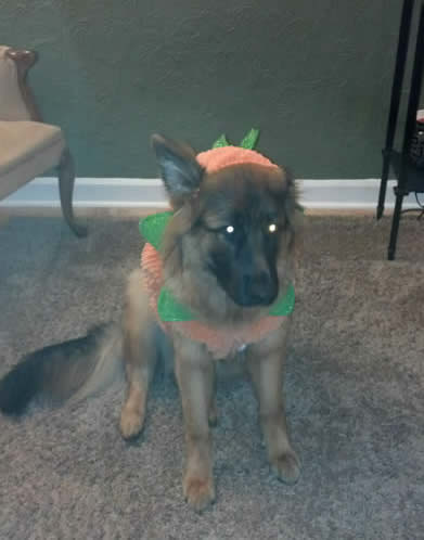Thank you for the birthday wish! Happy birthday to Ava and the rest of her litter mates. It has been a FUN year with little Miss Emery! She is such a GOOD girl! Attached are some pics from Halloween and Emery's 1st birthday party (you can see how excited she was to enjoy her birthday cookie!!). Can't wait to celebrate many more with her!