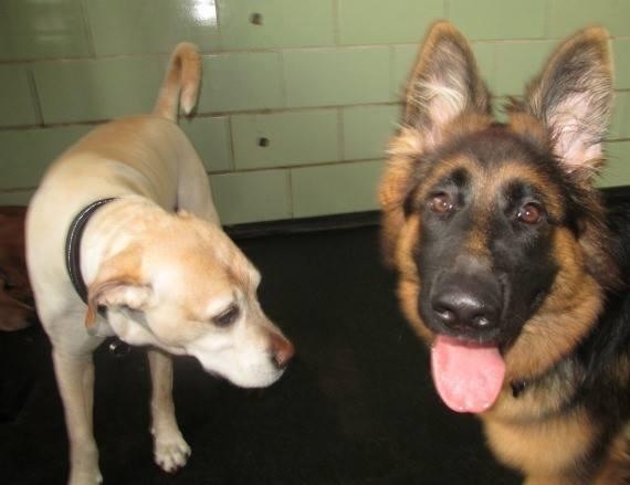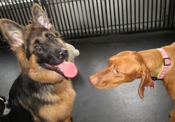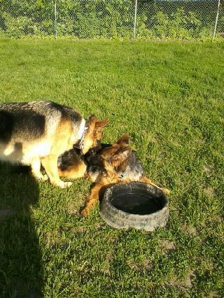 "Roxy" and Danika. Roxy is a female pup from Ben x Bella's Nov 2013 litter.
