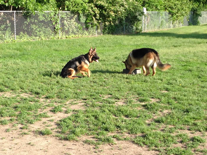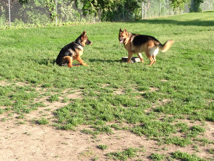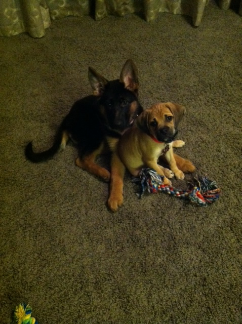 This is "Roxy" on right a pup from Ben x Bella's 11/13/13 litter.