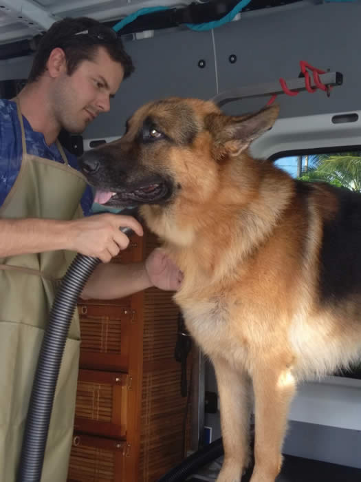 This is "Jimbo" a pup from Bo x Ulta. Jimbo resides in Hawaii with Jim Nabors and Stan. Photo shown with Jimbo's groomer.