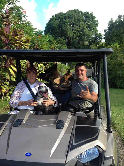 Pictured: Jimbo & Candy. We returned yesterday from Hana. Jimbo is getting used to traveling.
