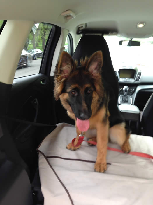 Here are some pics of Emery "Emmy". We picked the name because in German it means "house ruler" and in American it means "brave and powerful". I'm sure she will have no trouble living up to those meanings! Emmy did such a great job on the drive home, she slept most the way and occasionally had to check out the window! She has been having so much fun in her new surroundings and meeting the family. She is a good girl. Enjoy the pics, and thanks again for such a great puppy!