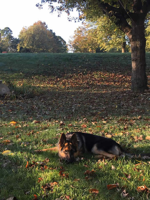 Attached are some 6 month Pics. You can see in the pics he has finally started to enjoy the fall weather since it has recently started cooling off. He will lay in the yard for hours on end perfectly content being on squirrel and rabbit patrol!