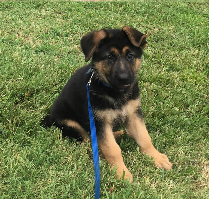 Love her to death! Very bright and learns quickly plus lots of personality. Has slept thru the night in her crate by the bed since we brought her home. Now 19lbs 6oz. Has really taken to socializing and gets along well with people and other family dogs. Everyone remarks how beautiful she is. Very mouthy but improving.