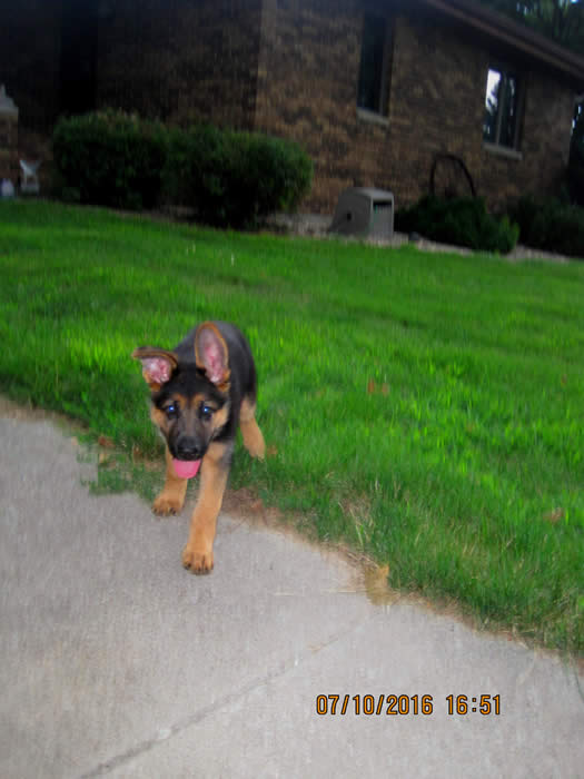 This is "Harley" aka "gold collar" female pup from Ava x Ruger's April 2016 litter.