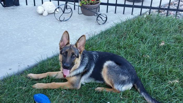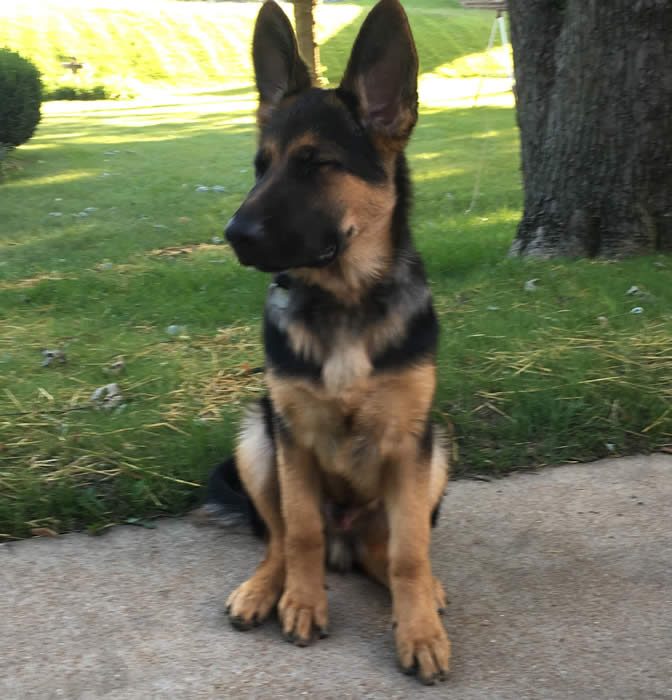 Look at the size of his head for 6 months of age! What a BIG boned GORGEOUS German Shepherd he is !!! Koa resides in the St. Louis area with Glenn and family.