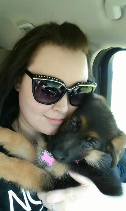This is "Dakota" a female pup at 8 wks old with her new owner Debbie.