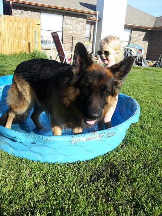 Gets along great with all the grandkids and loves to go with me in the truck. Very healthy according to the vet. She minds well and making good progress on all the basic commands. She is my best buddy ! Thanks to you for providing great dogs and happiness to families. -jd-