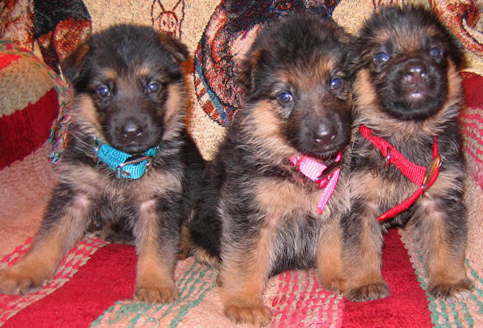 Update 12/18/08: SOLD! These 3 females are reserved w/deposits. Photo above of the 3 Black/RED FEMALE pups from Anji x Chaos' litter born 11/21/08/ Photo at 3 weeks of age, on 12/18/08. $1500 each, plus shipping. $300 deposit required to reserve. Pups will be ready to go mid-January 2009.