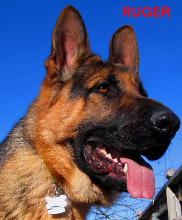 Ruger is a BIG thick boned Black and RED German Shepherd with a massive head, he produces the German Shepherd pups that EVERYBODY wants!!! He is a super nice dog that produces pups that are just like him...Phenomenal !!!