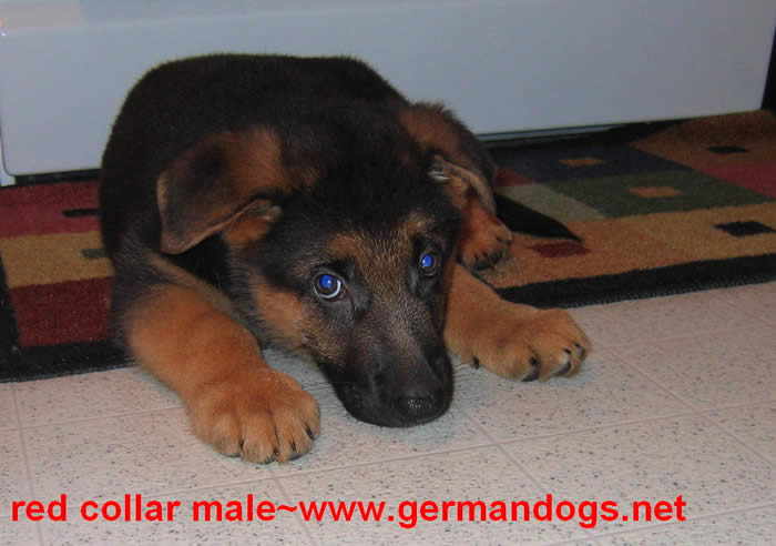 This is a 4 wk old male, blk/red pup from Chaos x Ginny's April 2008 litter.
