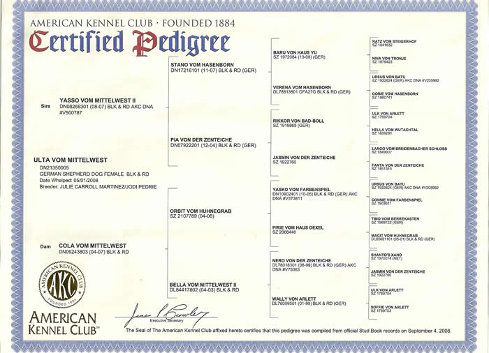 Pedigree for Ulta vom Mittelwest