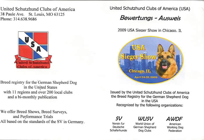 This is Ulta's VP rating at the 2009 USA Sieger Show in Chicago, IL. Judge Margit van Dorssen.