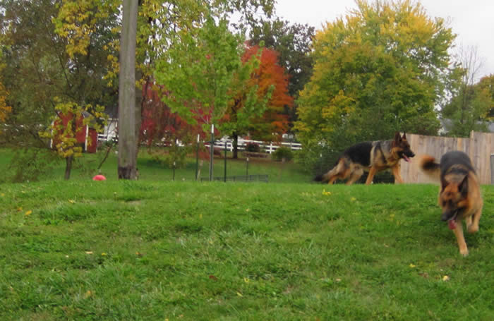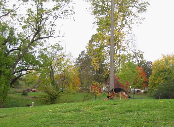 Bella on the deck looking below at some rabbits playing 10/02/12